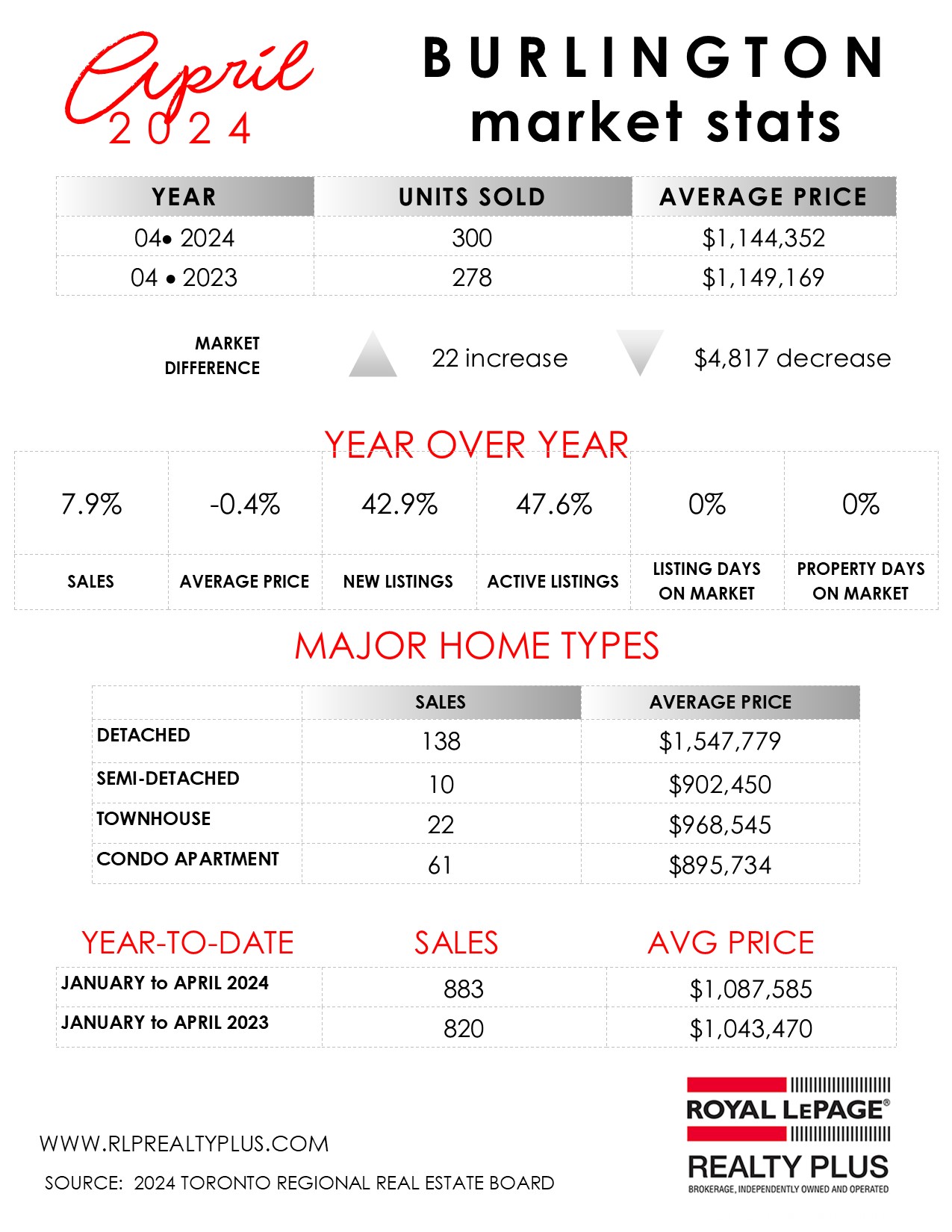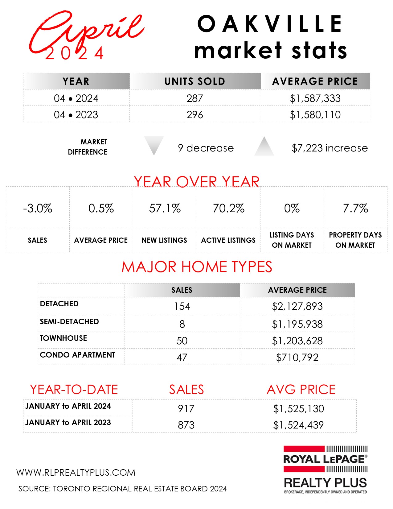 Oakville-Burlington...April 2024 residential re-sale housing sales summary as reported by the Toronto Regional Real Estate Board (TRREB)…